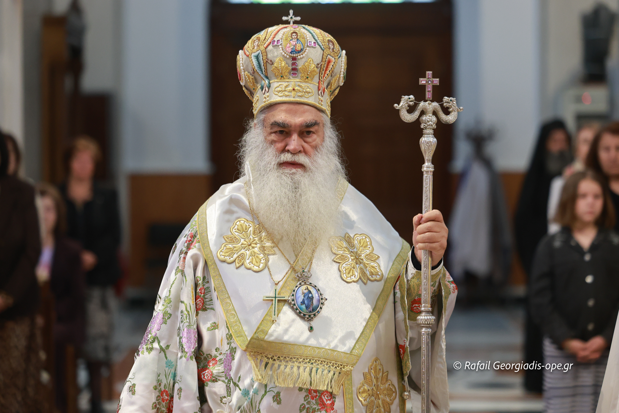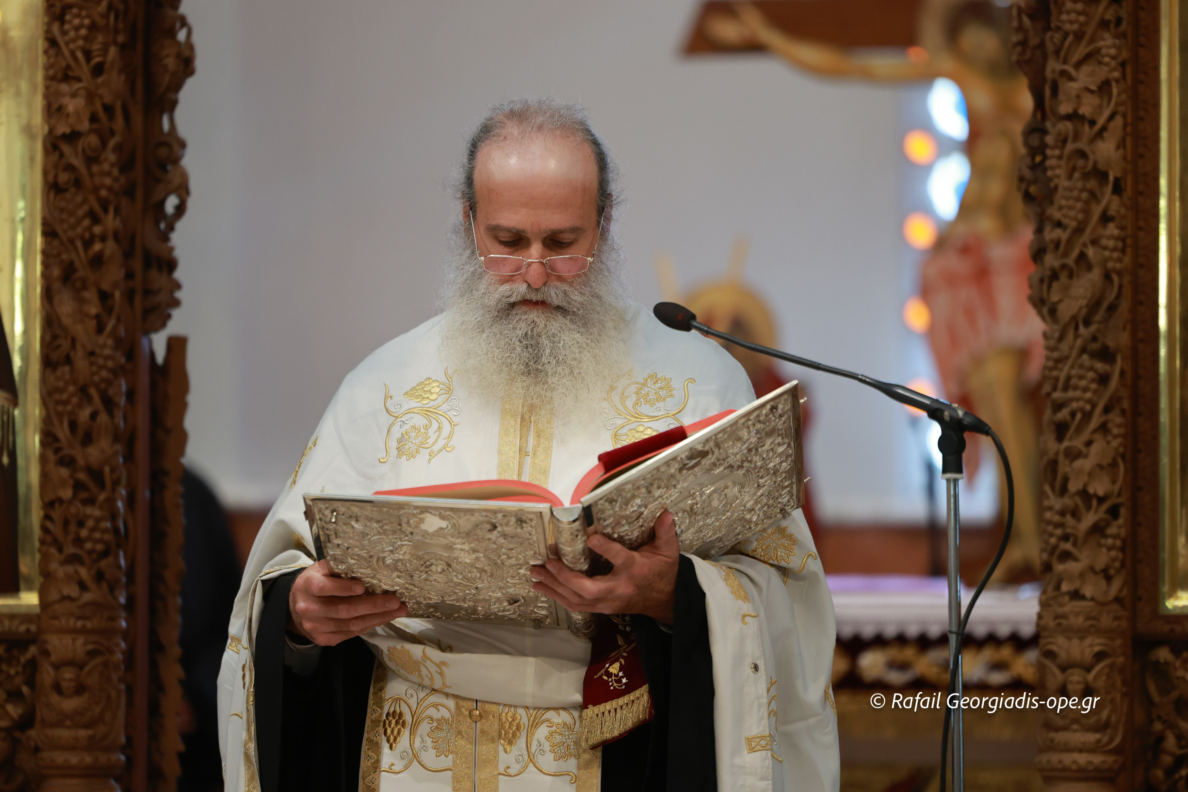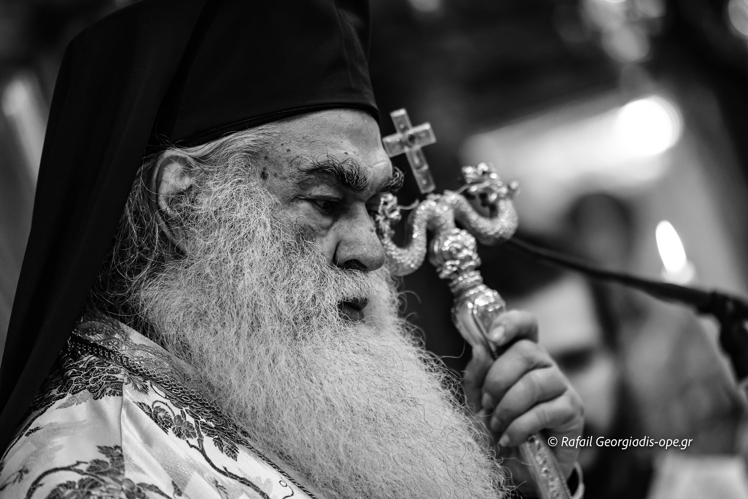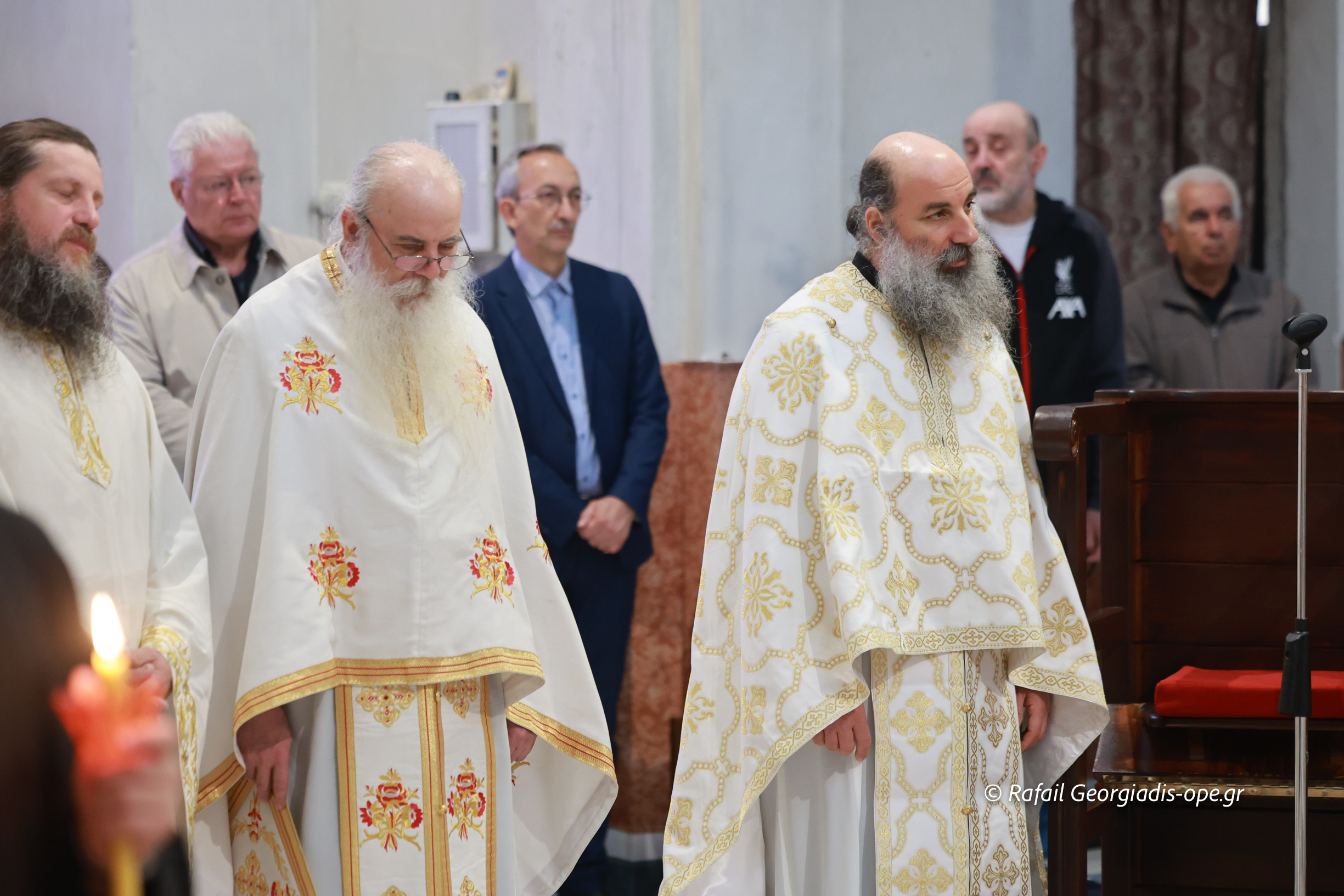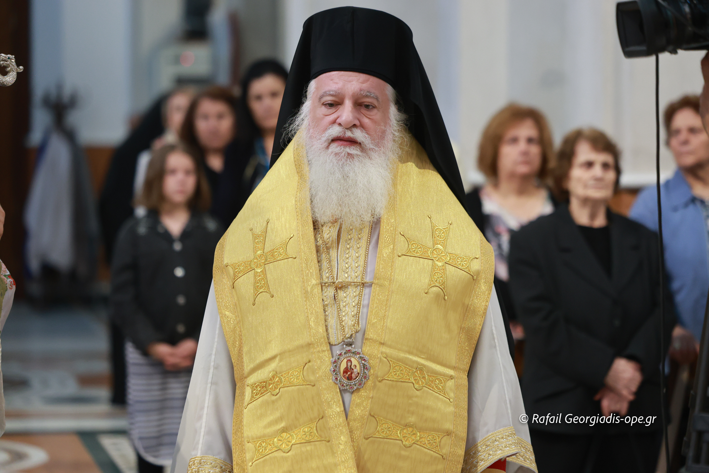 Στο τέλος της Θείας Λειτουργίας ο Σεβασμιώτατος ευχαρίστησε τον γέροντα Εφραίμ και του πρόσφερε την εικόνα των Αγίων Ραφαήλ, Νικολαου και Ειρήνης.