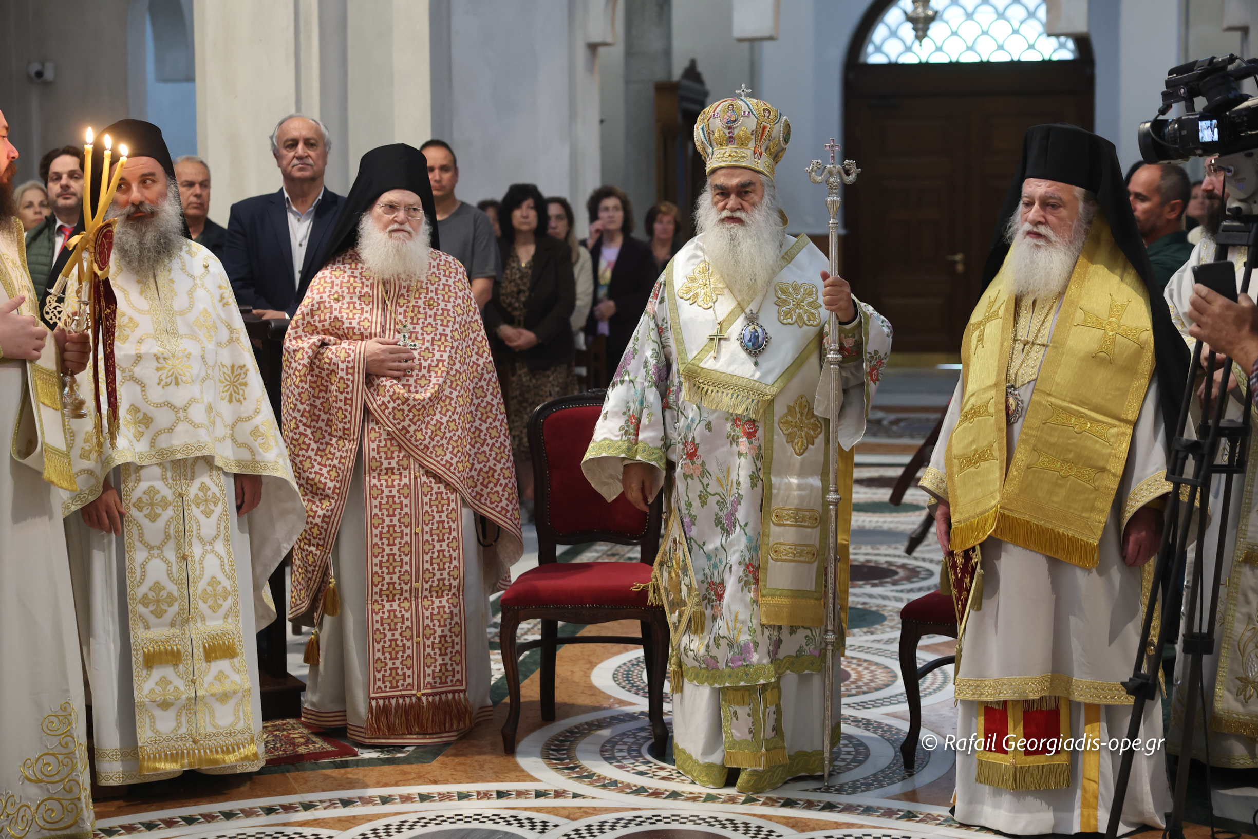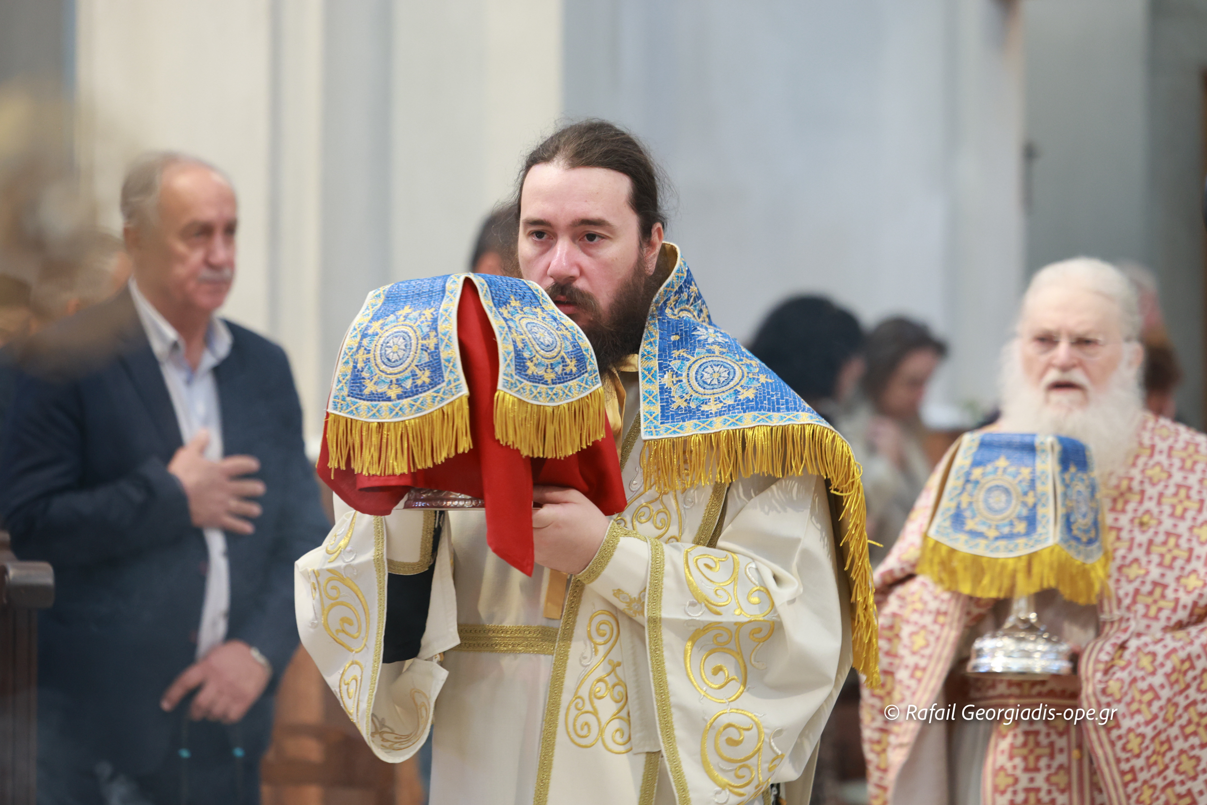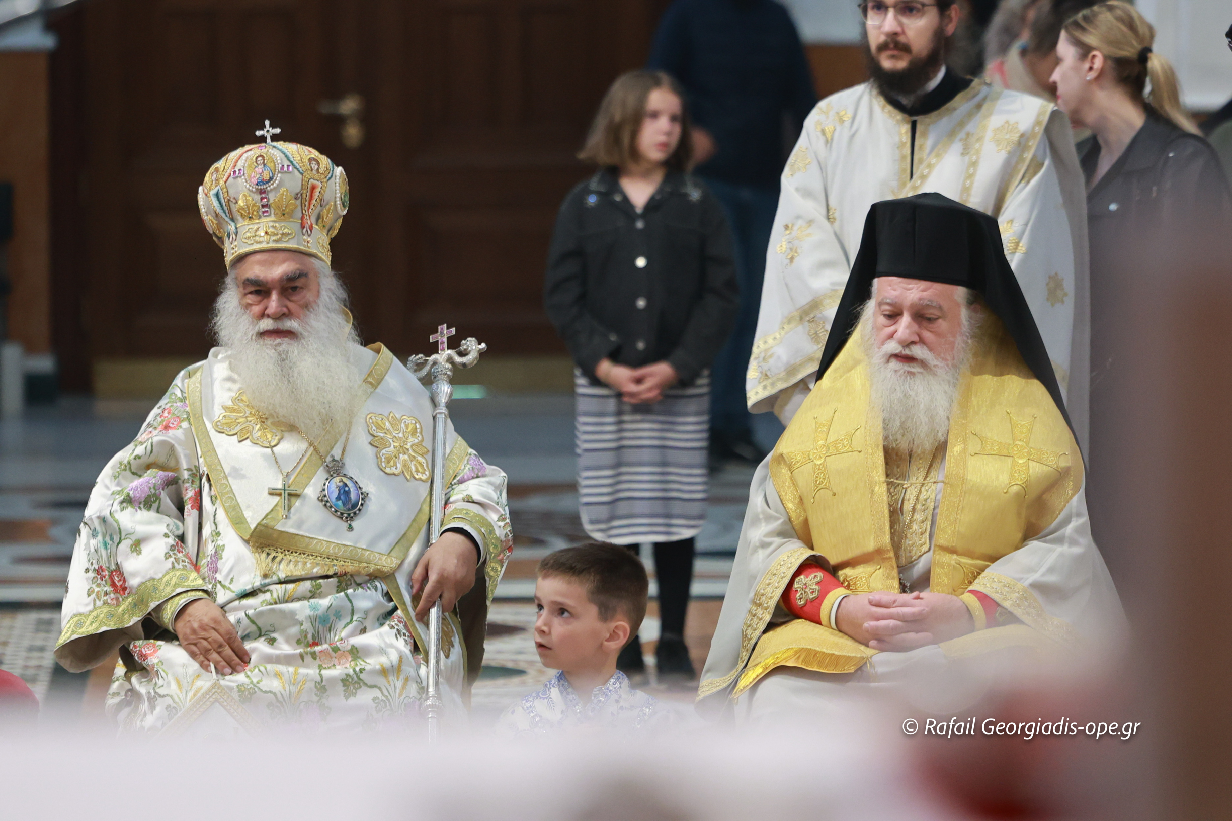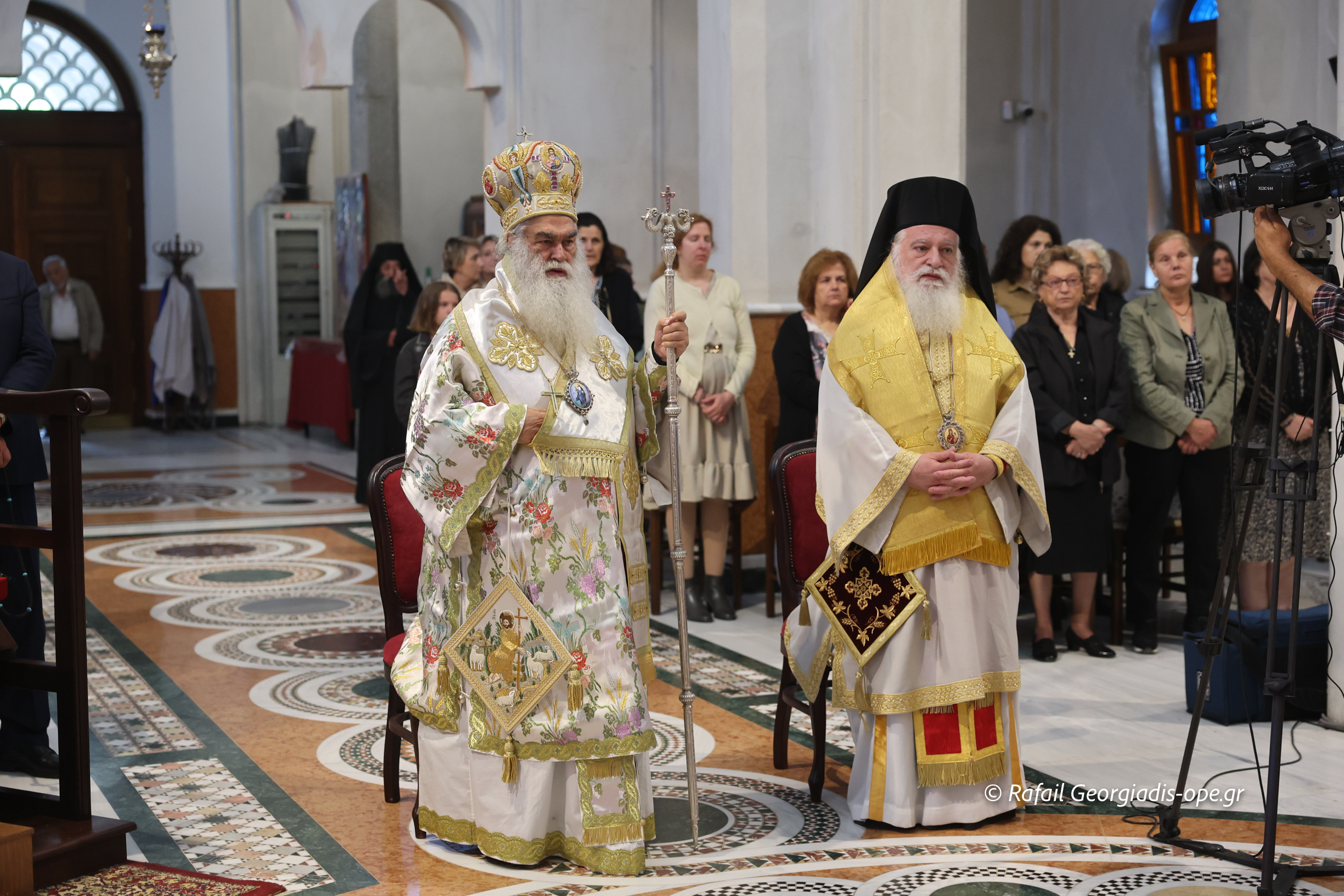 Στο τέλος της Θείας Λειτουργίας ο Σεβασμιώτατος ευχαρίστησε τον γέροντα Εφραίμ και του πρόσφερε την εικόνα των Αγίων Ραφαήλ, Νικολαου και Ειρήνης.
