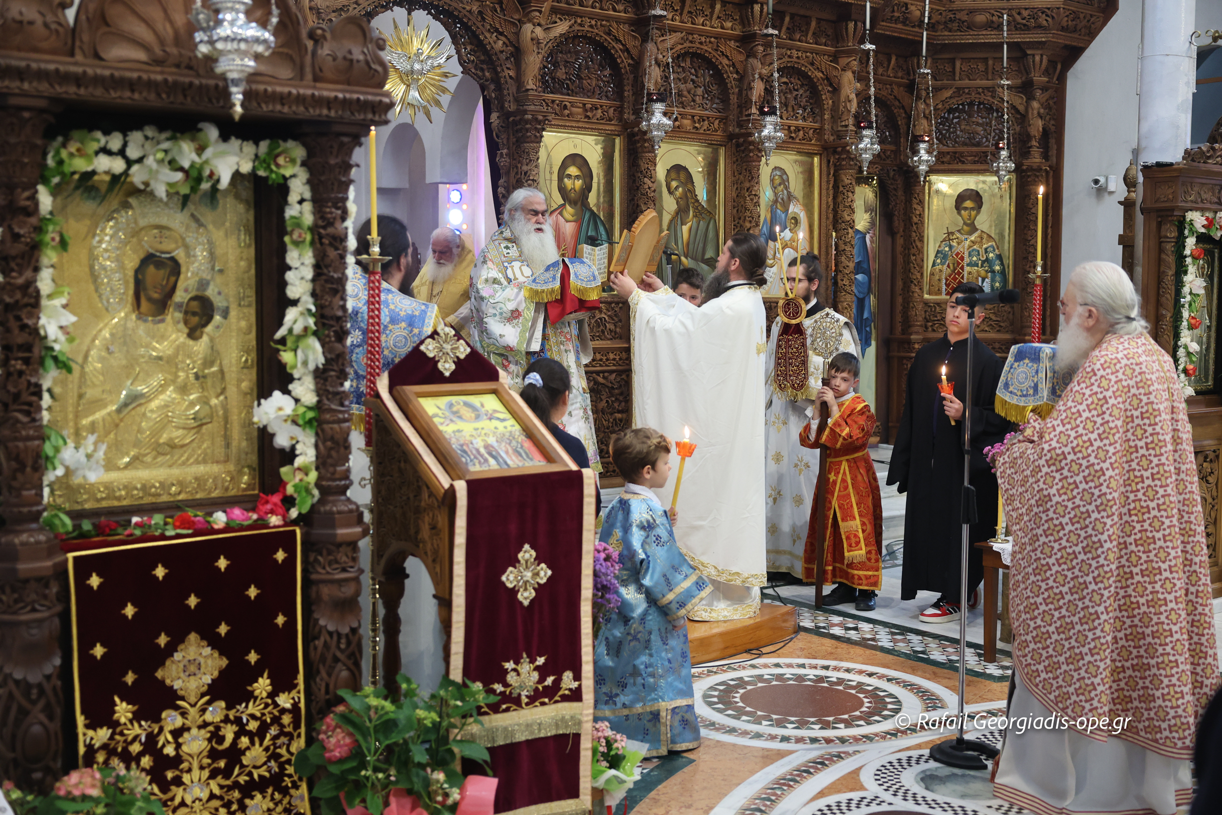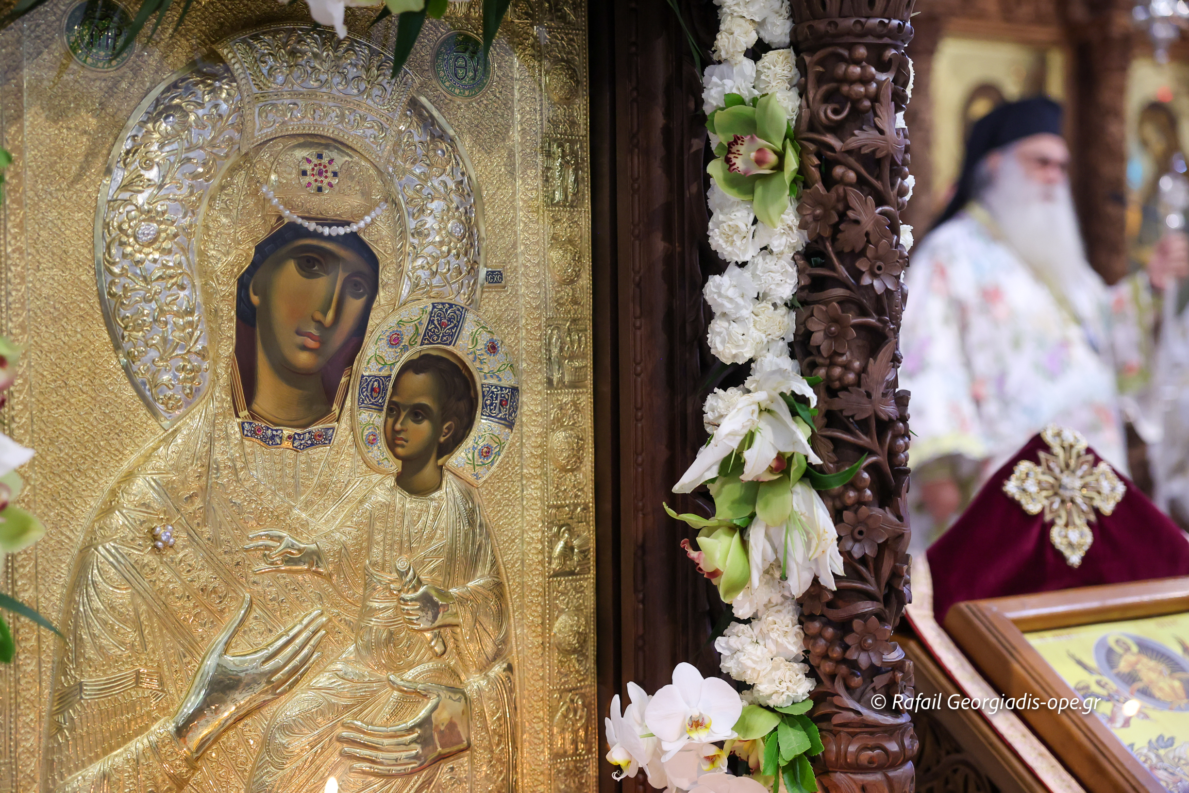 Με λαμπρότητα τελέσθηκε το Σάββατο 31 Μαΐου 2025, Αρχιερατικό συλλείτουργο στην Ι.Μ. Αγίου Ραφαήλ Γρίβας, επί τη ελεύσει εκ της Ιεράς Μεγίστης Μονής Βατοπαιδίου πιστού αντιγράφου της Ιεράς Εικόνας της Παναγίας της Βηματάρισσας στην Ιερά Μονή.