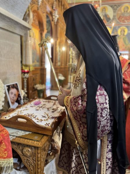 Κατά τη Θεία Λειτουργία τελέσθηκε και το 40ήμερο Ιερό Μνημόσυνο του μικρού παιδίου Μιχαήλ-Αλεξάνδρου Μπιλανάκη, παρουσία της οικογένειάς του και πλήθους πιστών.