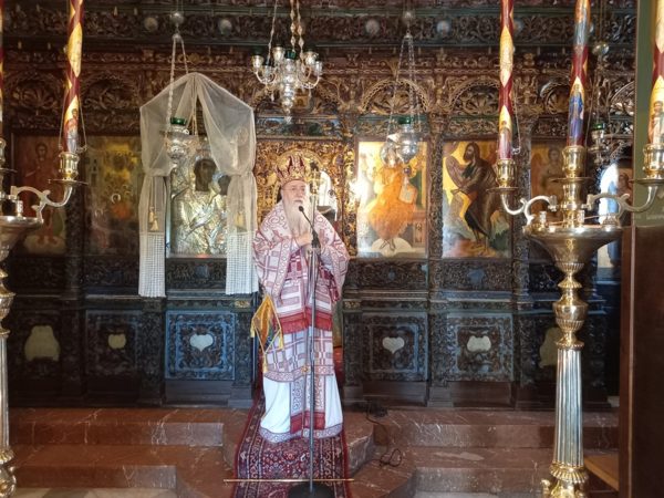 Στην συνέχεια ερμηνεύοντας την Ευαγγελική περικοπή της ημέρας, επεσήμανε ότι η Εκκλησία μας προετοιμάζει καταλλήλως τους Χριστιανούς για τον εορτασμό της Παγκόσμιας Υψώσεως του Τιμίου Σταυρού. Ο Χριστός προκειμένου να σώσει τον άνθρωπο από το προπατορικό αμάρτημα, την φθορά και τον θάνατο, Ήρθε, Δίδαξε, Θαυματούργησε, Έπαθε, Σταυρώθηκε, Θανατώθηκε, Αναστήθηκε και μετά από όλα αυτά και αφού ανήλθε στους Ουρανούς, μας χάρισε τον Παράκλητο, το Πνεύμα της αληθείας, και δι᾿ Αυτού για όλους, όσοι πιστεύσουν τα κοσμοσωτήρια γεγονότα, την σωτηρία.
