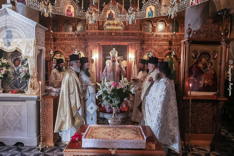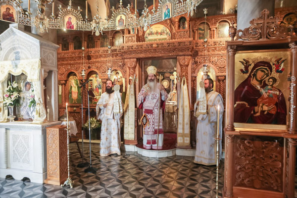 Το Σάββατο της Αποδόσεως της Κυριακής των Μυροφόρων τέλεσε την Αρχιερατική Θεία Λειτουργία στο Καθολικό της Ιεράς Μονής, συμπαραστατούμενος από τον Πρωτοσύγκελλο π. Άγγελο Ανθόπουλο, τον Γενικό Αρχιερατικό Επίτροπο της Ιεράς Μητροπόλεως π. Νεόφυτο Ραφαηλίδη και άλλους ιερείς. Στην κατανυκτική Θεία Λειτουργία έψαλε χορός ιεροψαλτών υπό τον κ. Ανδρέα Ιωακείμ, Διευθυντή του Ωδείου της Ιεράς Μητροπόλεως «ΑΓΙΟΣ ΓΕΡΜΑΝΟΣ Ο ΜΕΛΩΔΟΣ».