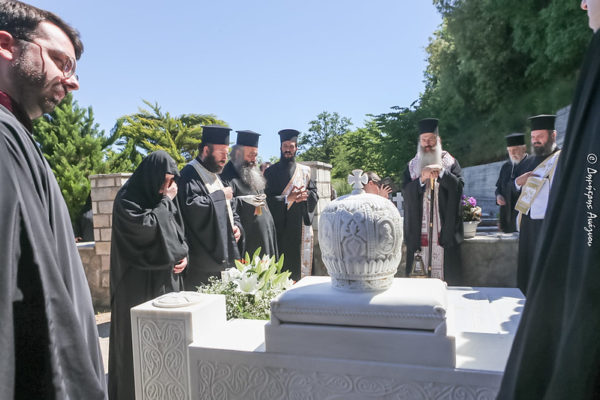 Μετά το πέρας της Ευχαριστιακής Συνάξεως ο κ. Συμεών μετέβη στο Κοιμητήριο της Μονής, όπου τέλεσε Αναστάσιμο Τρισάγιο στον Προκάτοχο του μακαριστό Μητροπολίτη Φθιώτιδος κυρό Νικόλαο Πρωτοπαπά, μέσα σε κλίμα συγκίνησης και ιεράς ανάμνησης.