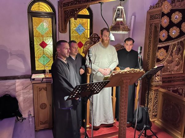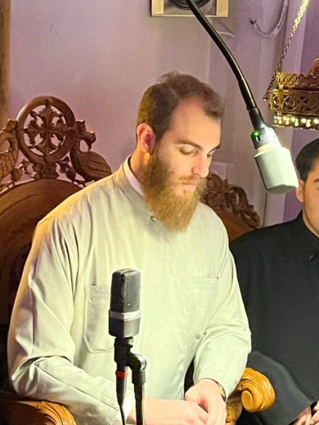 Κατά την ιερά αγρυπνία έψαλε χορός υπό τη διεύθυνση του Πρωτοδιακόνου του Καθεδρικού Ιερού Ναού Αθηνών π. Ιωάννου Καρπασινού.