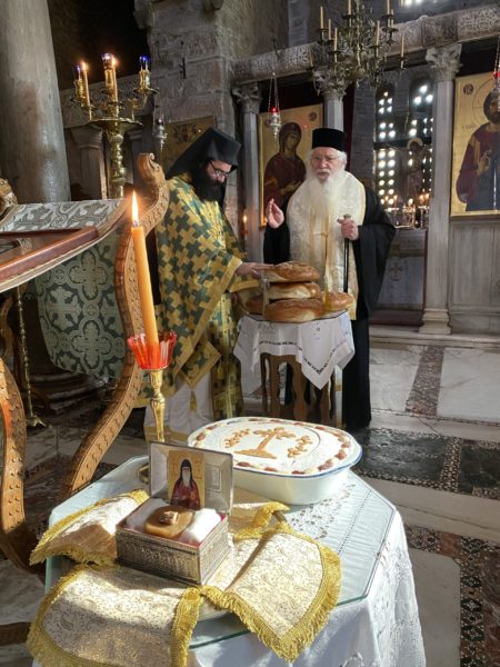 Το πρωί της Δευτέρας 9 Νοεμβρίου ο Σεβασμιώτατος παρέστη συμπροσευχόμενος στη Θεία Λειτουργία, που τελέστηκε στον Ιερό Μητροπολιτικό Ναό Εισοδίων της Θεοτόκου Λεβαδείας, και ευχήθηκε στον εφημέριο του Ναού και Ηγούμενο της Ιεράς Μονή Αγίας Σκέπης – Αγίων Αναργύρων πανοσ. αρχιμ. π. Νεκτάριο Αυγέρο για την ονομαστική του εορτή.