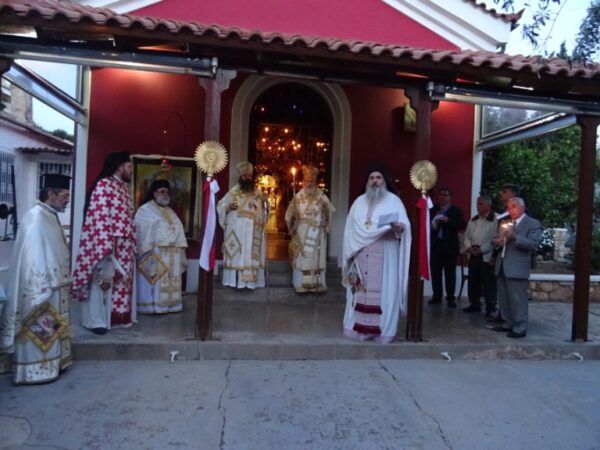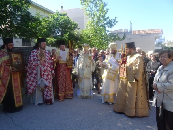 Ακολούθησε η Ι. Λιτανεία και ο Αγιασμός κατά την Μοναστηριακή Τάξι, η ευλόγισις των άρτων (κατά συγκατάβασινπαρά το παράτυπον, δια τας προσφοράς των πιστών, των θεωρούντωντην αρτοκλασίαν ως εορταστικόνστοιχείον των πανηγύρεων) και ο Σεβ. Ποιμενάρχης μας με θερμούς λόγους αφού ευχαρίστησε τον ομιλήσαντα Ιεροκήρυκα του Ι. Καθεδρικού Ναού των Αθηνών και Καθηγούμενο της Ι. Μονής Αγ. Παρασκευής Μαζίου Μεγάρων Πανοσ. Αρχιμ. π. Χρυσόστομο, ανεφέρθή στις πλούσιες ευλογίες που ο Αναστάς Ιησούς εχάρησε στους τρείς από τους Πατέρες της Ι. Μονής, και μάλιστα εντός ενός τετραμήνου, με την προαγωγή του αγίου Καθηγουμένου εις ΒοηθόνΕπίσκοπον της Ι. Μητροπόλεως μας, την λήψι του οφίκιου του Σταυροφόρου Συγκέλλου – Οικονόμου του π. Προδρόμου και την εις Πρεσβύτερον Χειροτονία του π. Λογγίνου, ευχόμενος στους Πιστούς επικαίρως.