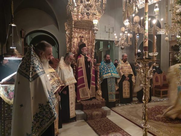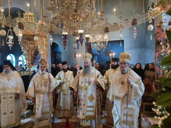 Την κυριώνυμη ημέρα, Κυριακή 23 Ιανουαρίου, τελέστηκαν το Μεσονυκτικό, ο Όρθρος και Τριαρχιερατικό Συλλείτουργο προεξάρχοντος του Σεβασμιωτάτου Μητροπολίτη Κίτρους, Κατερίνης και Πλαταμώνος κ. Γεωργίου, ο οποίος ως εκπρόσωπος του Οικουμενικού Πατριαρχείου, μετά την ευαγγελική περικοπή, ανέγνωσε το μήνυμα του Παναγιωτάτου Οικουμενικού Πατριάρχου κ.κ. Βαρθολομαίου, τις ευχές του οποίου μετέφερε στον Καθηγούμενο Αρχιμ. π. Μάξιμο, τη Μοναστική Αδελφότητα και τους ευλαβείς Προσκυνητές.
