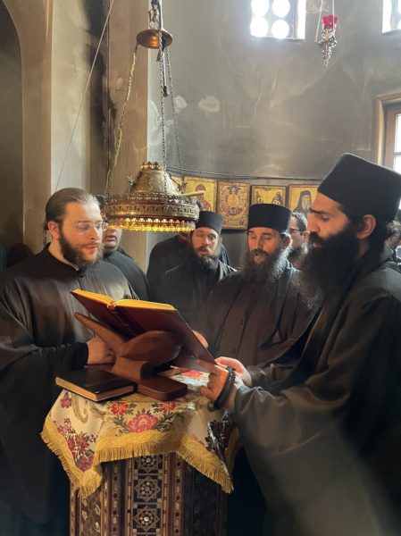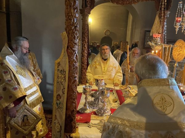 Το απόγευμα της ίδιας ημέρας τελέστηκαν ο Εόρτιος Εσπερινός και το Κτητορικό Μνημόσυνο, χοροστατούντος του Θεοφιλεστάτου Επισκόπου Αρούσας και Κεντρικής Τανζανίας κ. Αγαθονίκου, Ιεράρχου του Πατριαρχείου Αλεξανδρείας και αδελφού της Ιεράς Μονής.