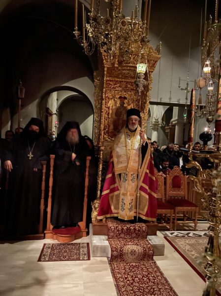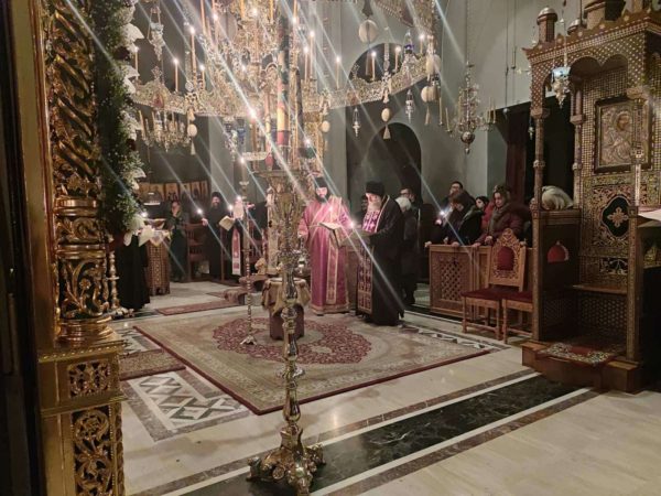 Μετά την υποδοχή τελέστηκε ο Πανηγυρικός Αρχιερατικός Εσπερινός, χοροστατούντος του Σεβασμιωτάτου Μητροπολίτη Τριπόλεως και πάσης Λιβύης κ. Θεοφυλάκτου, Ιεράρχου του Πατριαρχείου Αλεξανδρείας εφησυχάζοντος στην Πιερία, ο οποίος κήρυξε και τον Θείο Λόγο.
