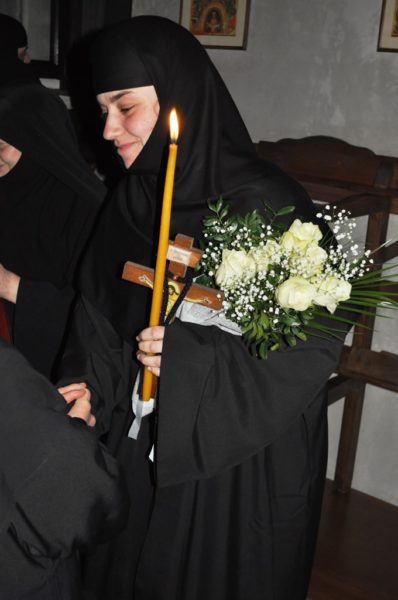Τέλος, ο Σεβασμιώτατος αναφέρθηκε στην σύγχρονη πορεία της Μονής, η οποία φιλοξενεί Μοναχές από διάφορα μέρη του κόσμου, γεγονός που, όπως τόνισε, «είναι ένας ζωντανός καρπός της Πεντηκοστής, της διασποράς του Αγίου Πνεύματος σε όλους, επιτυγχάνοντας την ενότητα, χωρίς να καταστρέφεται η ιδιαιτερότητα κανενός και καμιάς.…». Συνεχάρη την Ηγουμένη της Μονής, τους οικείους της νέας Μοναχής, και ευχήθηκε τον Αγιασμό του Αγίου Πνεύματος προς όλους.