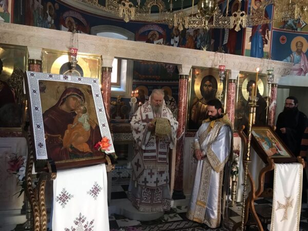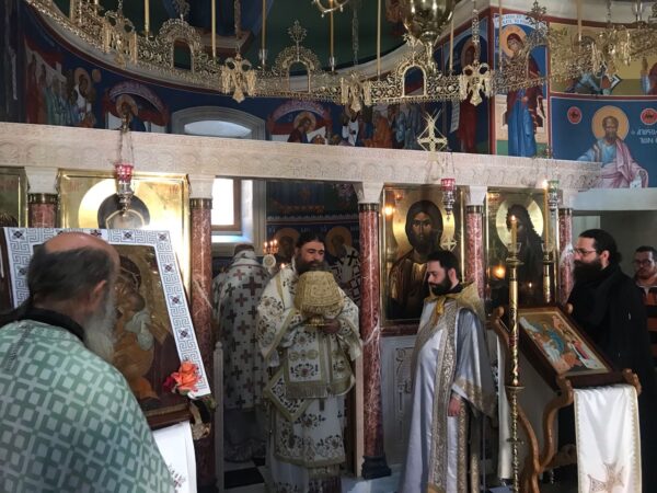Μετά το πέρας της Θείας Λειτουργίας τελέσθηκε η λιτάνευσις της Ιεράς εικόνος της Κυρίας των Αγγέλων προστάτιδος της Μονής.