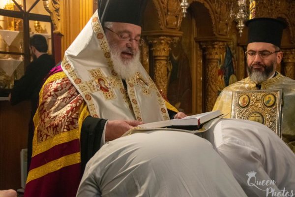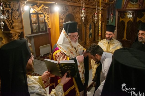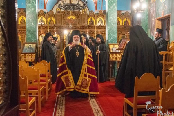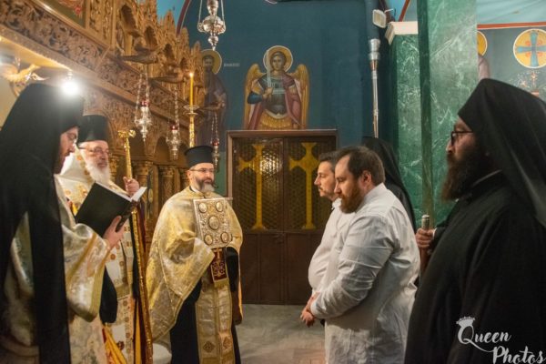 Προηγήθηκε ο Μέγας Εσπερινός της εορτής, χοροστατούντος του Σεβ. Μητροπολίτου Διδυμοτείχου, Ορεστιάδος και Σουφλίου κ. Δαμασκηνού, ο οποίος στη συνέχεια έκειρε τούς υποψηφίους εις μικροσχήμους μοναχούς.