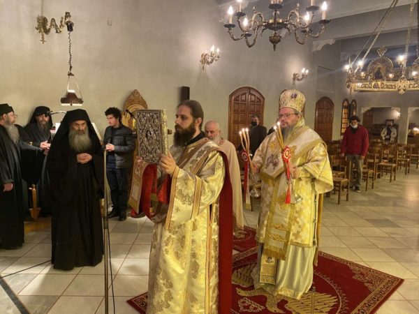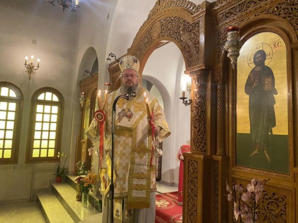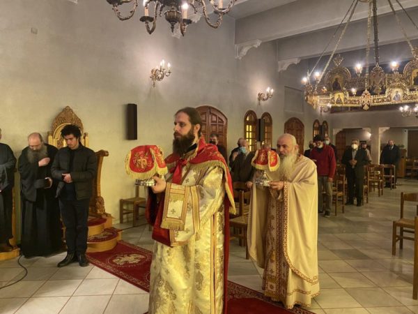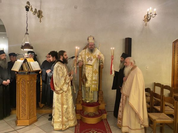 Ο Σεβασμιώτατος στο κήρυγμά του μίλησε για την αναγκαιότητα της μυστηριακής ζωής στη σωτηρία του ανθρώπου. Προ της απολύσεως ευχήθηκε στον άγιο καθηγούμενο και την αδερφότητα Καλή Ανάσταση!
