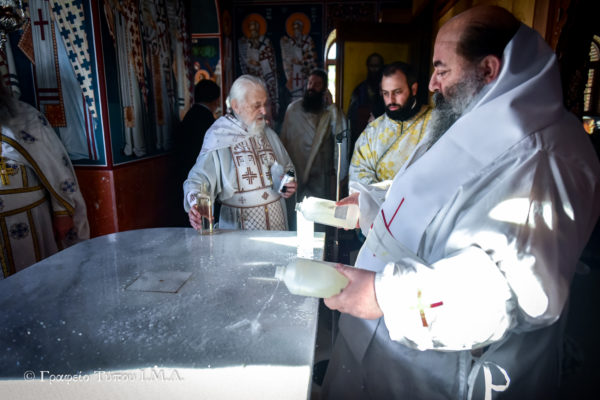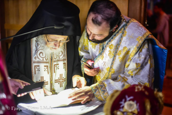 Το εσπέρας της παραμονής των Εγκαινίων, ο Σεβασμιώτατος μετέφερε στον υπό εγκαινιασμό Ιερό Παρεκκλήσιο, τα Μαρτυρικά Λείψανα τα οποία εναπέθεσε εις την Αγία Τράπεζα τοποθετώντας τα επί του Αγίου Δισκαρίου και ψάλλοντας τα Μαρτυρικά Τροπάρια της Ακολουθία της υποδοχής των Λειψάνων εντός του Ιερού Βήματος, ενώ εν συνεχεία χοροστάτησε του Αρχιερατικού Εσπερινού των Εγκαινίων πλαισιούμενος από Κληρικούς και Διακόνους.