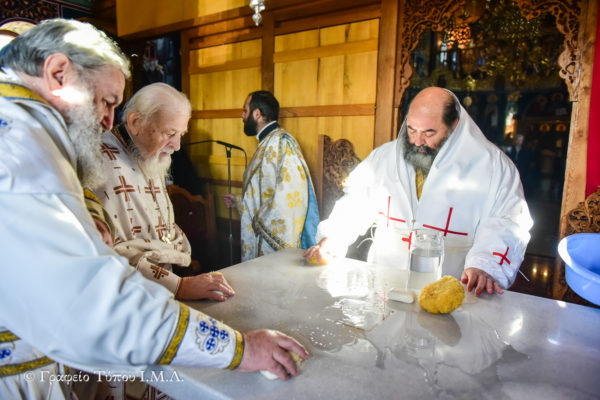 Τόσο στην εσπερινή ομιλία του, όσο και προ της Απολύσεως της Θείας Λειτουργίας, ο Σεβασμιώτατος αναφέρθηκε στην σημασία του γεγονότος του εγκαινιασμού ενός Ναού για την πνευματική ζωή των Πιστών, σημειώνοντας μεταξύ άλλων ότι θα πρέπει να κάνουμε κι εμείς ένα εσωτερικό εγκαινιασμό και μία νέα αρχή, καθαρίζοντας τον εαυτό μας από κάθε αμαρτία και κακό, έτσι ώστε να μπορούμε να ζούμε καθημερινά μέσα στο Φως και την Χάρη του Παρακλήτου, ενώ δεν παρέλειψε να κάνει και αναφορά στην μετατροπή της Του Θεού Σοφίας στην Κωνσταντινούπολη σε Μουσουλμανικό Τέμενος, τονίζοντας για μια ακόμα φορά την ρήση του Αγίου Συμεών, Αρχιεπισκόπου Θεσσαλονίκης ότι «ο άπαξ Ναός εσαεί Ναός».