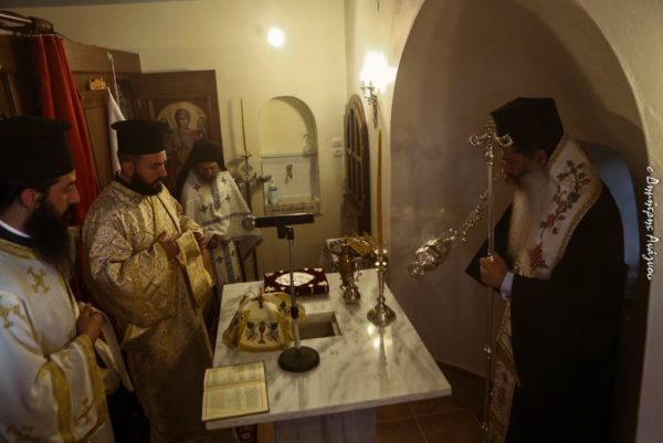 Ανήμερα της Εορτής ο Σεβασμιώτατος τέλεσε τα Εγκαίνια του Ναού και ακολούθως την πρώτη Πανηγυρική Αρχιερατική Θεία Λειτουργία στην καθιερωμένη Αγία Τράπεζα.