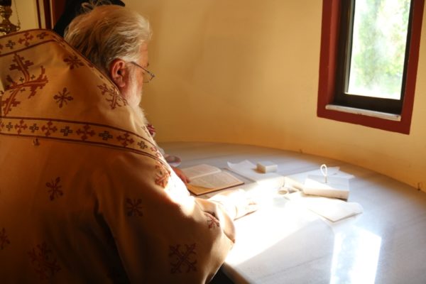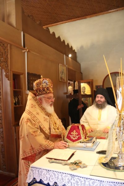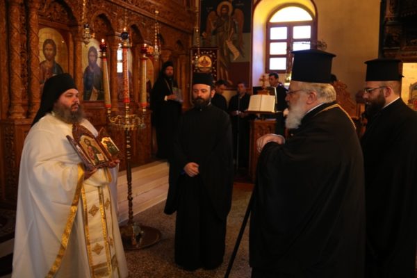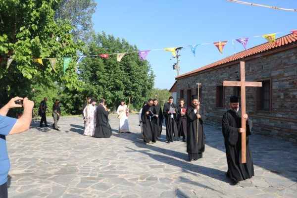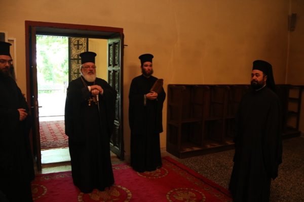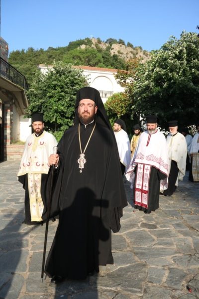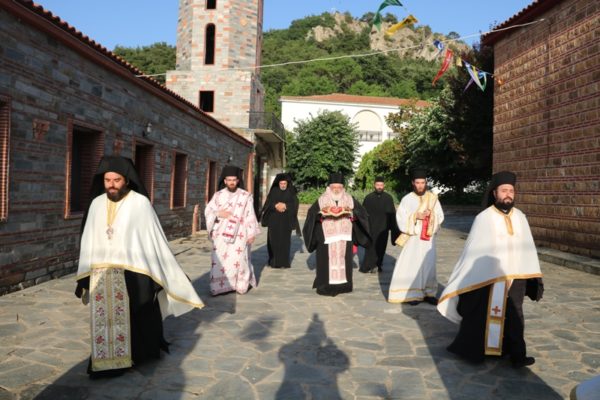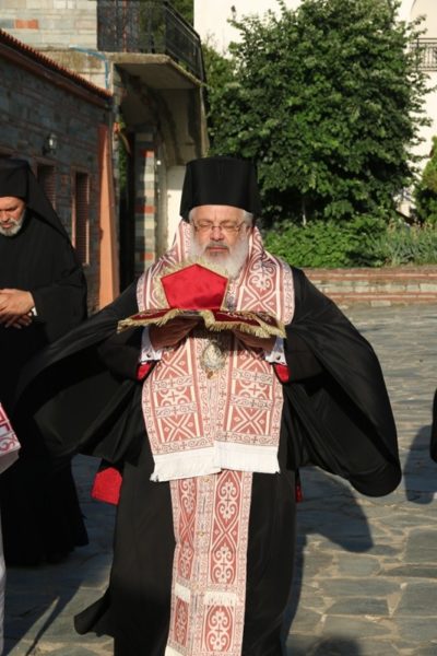 Ο Σεβασμιώτατος Μητροπολίτης Διδυμοτείχου, Ορεστιάδος και Σουφλίου κ. Δαμασκηνός, αφ’ εσπέρας της Παρασκευής, κόμισε τα προς εγκαινιασμό ιερά λείψανα και στη συνέχεια προέστη του Εσπερινού των Εγκαινίων στο Καθολικό της Μονής, πλαισιούμενος από τον Ηγούμενό της Αρχιμ. Θεόφιλο Βασιλάκο και τους περί αυτόν αδελφούς.