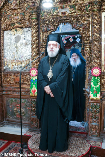 Ευχαρίστησε, επίσης, τους ιερόπαιδες, που διακονήσαν στο ιερό Βήμα, τις Ξενοδοχειακές Επιχειρήσεις της Μυκόνου και τις Ναυτιλιακές Εταιρείες για τη συνδρομή που προσέφεραν στον Ηγούμενο Αλέξιο, για την επιτυχία των Εκδηλώσεων.