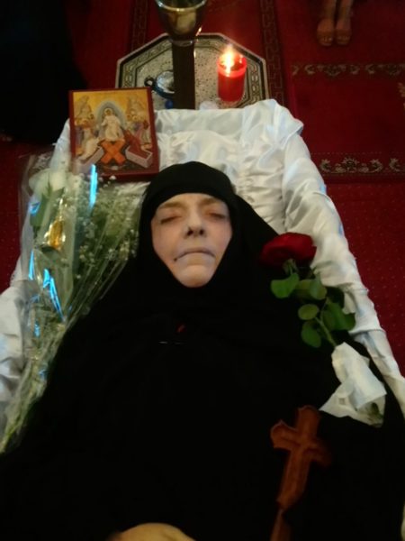 Το σκήνωμά της βρίσκεται από την Παρασκευή στο καθολικό της Ιεράς Μονής, όπου και θα διανυκτερεύσει. Την εξόδιο ακολουθία θα τελέσει ο Σεβ. Μητροπολίτης Εδέσσης κ. Ιωήλ το Σάββατο 11/9 και ώρα 12:00 μ. στο καθολικό της Ιεράς Μονής.