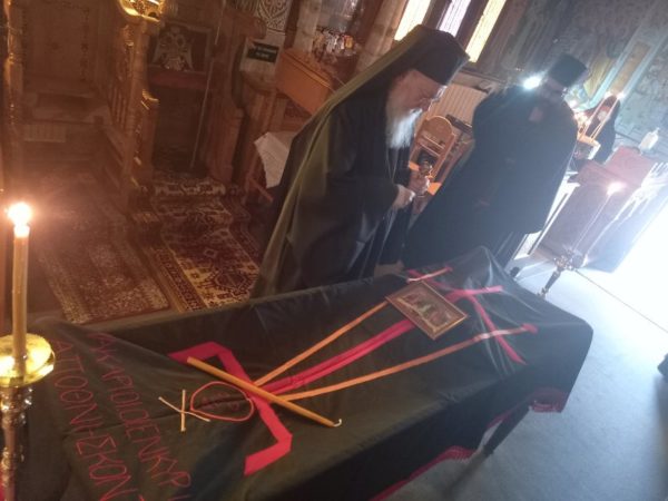 Στον επικήδειο λόγο του ο Σεβασμιώτατος περιέγραψε την ζωή με τρεις λέξεις, ως σταθμούς: ήμαρτον, συγχωρέστε με και φεύγω. Μετά το Προπατορικό αμάρτημα δεν μπορεί να γεννηθεί κανένας άνθρωπος αναμάρτητος, καθώς όλοι φέρουμε την πεπτωκυία φύση. Το Προπατορικό αμάρτημα συνοδεύεται από «ταοψώνιατής αμαρτίας», που φέρουν τον θάνατο. Έστω και μια ώρα ή ένα λεπτόνα ζήσει ο άνθρωπος είναι αμαρτωλός και αυτό γιατί η ζωή του έχει εκτραπεί από το θέλημα του Θεού, αφού μαζί με τον πρωτόπλαστοπαρεκτράπει ολόκληρο το ανθρώπινο γένος οδηγούμενο προς τον θάνατο. Γι᾿ αυτόν τον λόγο ο Θεός μας προετοίμασε για τον ερχομό του Υιού Του στην γη,ώστε να σωθούμε. Ο Χριστός κατέρχεται για να αποκαταστήσει τα πράγματα, ζητά την μετάνοια, δηλαδή την αλλαγή της νοοτροπίας μας και τον από-χωρισμό μας από τα έργα της αμαρτίας. Η μετάνοια προϋποθέτει την αυτογνωσία και η συγχώρηση είναι πρώτα από τον Θεό και έπειτα από τους ανθρώπους που συζήσαμε, καθώς οι συνάνθρωποί μας είναι εικόνες του Θεού. Το φεύγω σημαίνει ότι επιστρέφω από εκεί που προήλθα. Η μακαριστή αδελφή Ευβούλη θέλησε να ζήσει κάνοντας όλα τα παραπάνω πράξη και επιθυμώντας να επανεύρει τον παλαιό άνθρωπο και να μιμηθεί τα Αγγελικά Τάγματα που ατρέπτως διακονούν και δοξολογούν τον Θεό. Ολοκληρώνοντας, προέτρεψε την Ι. Αδελφότητα να προσευχηθεί για την ψυχή της αοιδίμου, ώστε να καταστεί βεβαία ότι την συγχωρήσατε και ακόμα ότι την προπέμπετε στα ουράνια σκηνώματα για να αναπαυθεί!