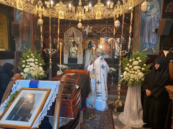 Την Δευτέρα, 4 Ιουλίου 2022, το απόγευμα ο Σεβασμιώτατος Μητροπολίτης Κορίνθου, συνοδευόμενος υπό του Διακόνου του π. Δαμασκηνού Γεννηματά, μετέβη στην Ι. Μονή και τέλεσε Νεκρώσιμο Τρισάγιο ενώπιον του σκηνώματος της μακαριστής Καθηγουμένης. Μετά το πέρας του Τρισαγίου συνομίλησε πατρικώς με τις μοναχές παρηγορώντας τες και νουθετώντας τες για τα μελλούμενα.