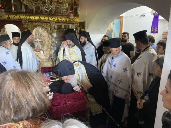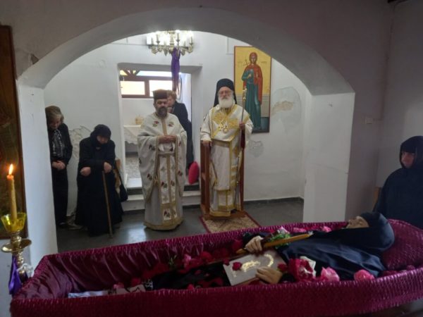 Μετά το πέρας της Θείας Λειτουργίας τελέστηκε η εξόδιος ακολουθία και ο ενταφιασμός της μακαριστής Ηγουμένης Γερόντισσας Μαρίνας. Ο Σεβασμιώτατος μίλησε για το πρόσωπο της αείμνηστης Ηγουμένης, όπου ήταν Γερόντισσα με τα πολλά χαρίσματα, της αγάπης, της συγχώρεσης, της ταπείνωσης.