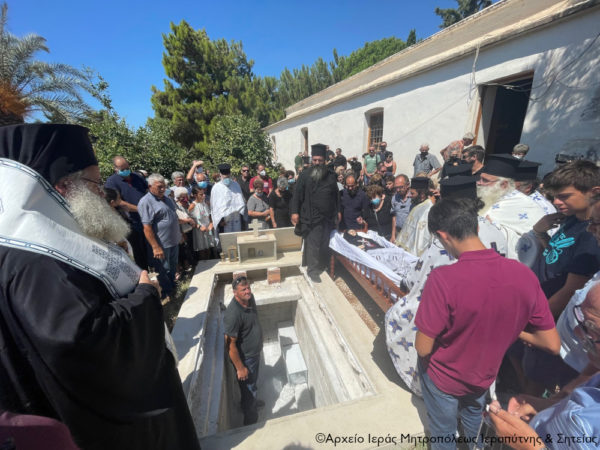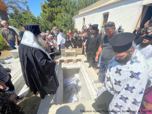 Σε κλίμα συγκίνησης τελέστηκε την Πέμπτη 18 Αυγούστου 2022 στην Ιερά Μονή Αγίων Πάντων Αγιασμένου Ιεράπετρας η εξόδιος ακολουθία της μοναχής Θεοπίστης, κατά κόσμον Καλλιόπης Ταβλάκη.