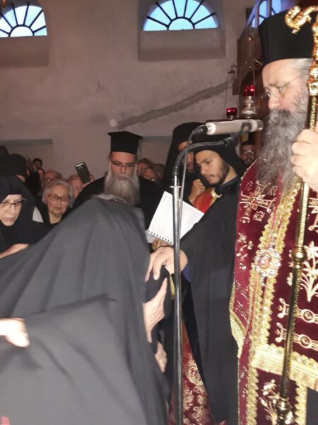 Στην ομιλία του ο Σεβασμιώτατος, απηύθηνε λόγους επιστηρικτικούς για την πνευματική πορεία της νεόκουρης Μοναχής. Ιδιαιτέρως, τόνισε ότι το όνομα το οποίο έλαβε είναι ενός αγιασμένου ανθρώπου, ο οποίος αφιέρωσε όλη του τη ζωή στην καλή μαρτυρία της Εκκλησίας και τη διάδοση του Ορθόδοξου Μοναχισμού στην Αμερική. Ξεκίνησε από το Άγιον Όρος κάτω από την πνευματική καθοδήγηση του Οσίου Γέροντος πατρός Ιωσήφ του Ησυχαστή.