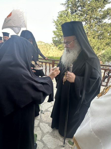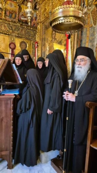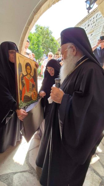 Η νέα Ηγουμένη και οι αδελφές της Μονής προσέφεραν στον Μακαριώτατο εικόνισμα του Αρχαγγέλου Μιχαήλ εις ένδειξη ευχαριστίας, σεβασμού και ευγνωμοσύνης.