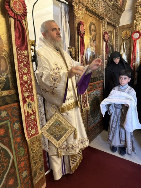 Αρχιερατική Θεία Λειτουργία τελέστηκε το Σάββατο της Διακαινησίμου, 11 Μαΐου 2024, στην Ιερά Μονή Αρχαγγέλου Μιχαήλ Αναλυόντα, υπό του Θεοφιλεστάτου Επισκόπου Νεαπόλεως κ. Πορφυρίου, πλαισιουμένου από τους Πρωτοπρεσβύτερους Δημοσθένη Δημοσθένους και Δήμο Δημοσθένους, τον Οικονόμο Ιωάννη Κτίστη, Εφημέριο της Μονής, και τον Ιεροδιάκονο Γεώργιο Μυτιληναίο.