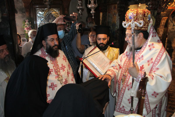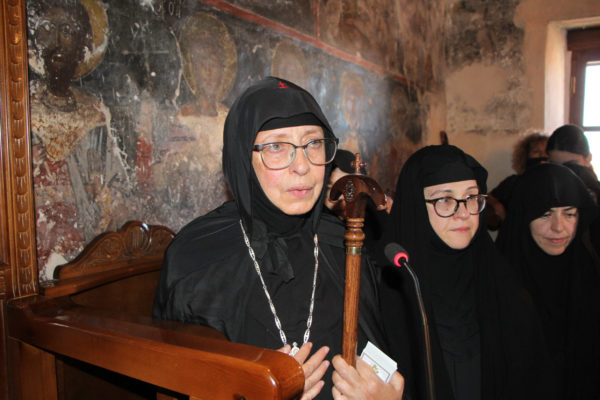 Ο Σεβασμιώτατος αντιφωνώντας και φανερά συγκινημένος ευχήθηκε τα δέοντα στη νέα Ηγουμένη, τονίζοντας ότι με την έλευση της νέας αδελφότητας η Μονή ζωντάνεψε, ανοίγοντας ένα νέο κεφάλαιο στην ιστορία της. Καταλήγοντας προέτρεψε την Ηγουμένη να μεταλαμπαδεύει την αγάπη του Χριστού προς όλους.