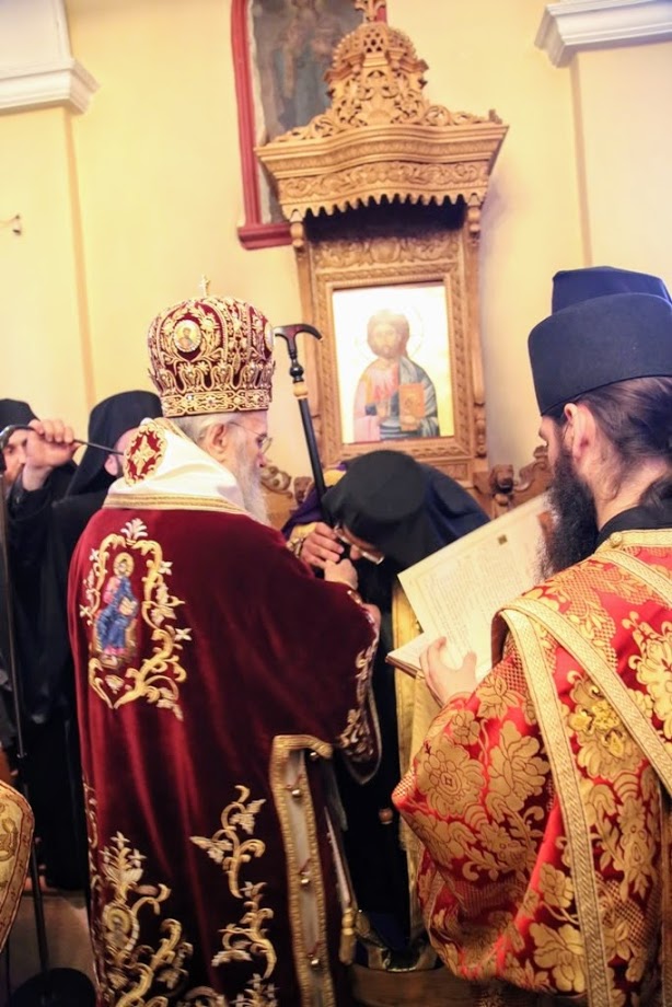 Ἄν καί στό ἐλατόδασος, μέσα ἀπό τό ὁποῖο περνᾶ ὁ δρόμος γιά τήν Ἱερά Μονή, ἐπικρατοῦσε χιονόπτωση, καί καθ’ ὅλη τήν διάρκεια τῆς θείας Λειτουργίας μικρή χιονοθύελλα, ὅλα ἔγιναν κατά τό καλύτερο τρόπο στό καθολικό τῆς Ἱερᾶς Μονῆς: Ἀρχιερατική θεία Λειτουργία, χειροτονία Πρεσβυτέρου ἀπό τούς ἀδελφούς τῆς Μονῆς, ἐνθρόνιση Ἡγουμένου, λόγοι, ἀρτοκλασία.