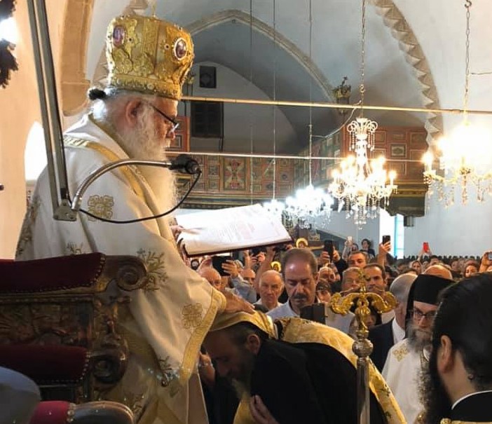 Κατά την διάρκεια της Θείας Λειτουργίας προχείρισε σε Αρχιμανδρίτη και Ηγούμενο της Μονής τον εψηφισμένο Ηγούμενό της, Οικονόμο Παγκράτιο, ο οποίος προέρχεται από την αδελφότητα μιας άλλης ιστορικής Μονής της Παναγίας Τροοδιτίσσης.