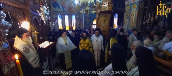 Προηγήθηκε Μέγας Εσπερινός, προεξάρχοντος του Σεβασμιωτάτου Μητροπολίτου Άρτης κ. Καλλινίκου, ο οποίος στην συνέχεια προεχείρισε την νέα Καθηγουμένη.