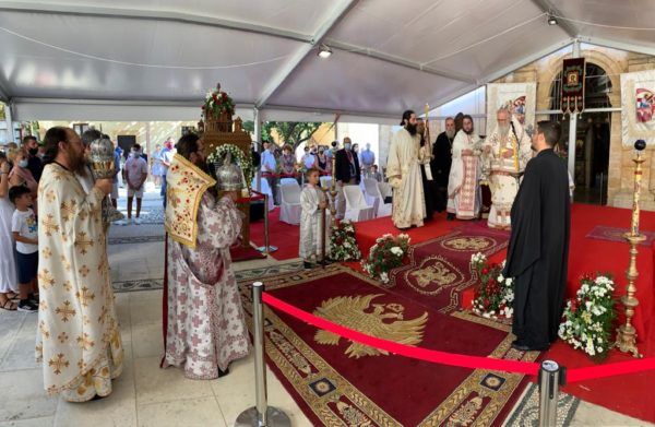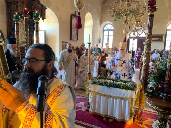 Το πρωί της παραμονής προεξήρχε της πανηγυρικής Θείας Λειτουργίας εις την Ι. Μονή Παναγίας Χρυσοσκαλιτίσσης, το δε εσπέρας και την κυριώνυμο ημέρα προεξήρχε απασών των λατρευτικών εκδηλώσεων εις την Ι. Πατριαρχική και Σταυροπηγιακή Μονή Οδηγητρίας Γωνιάς.