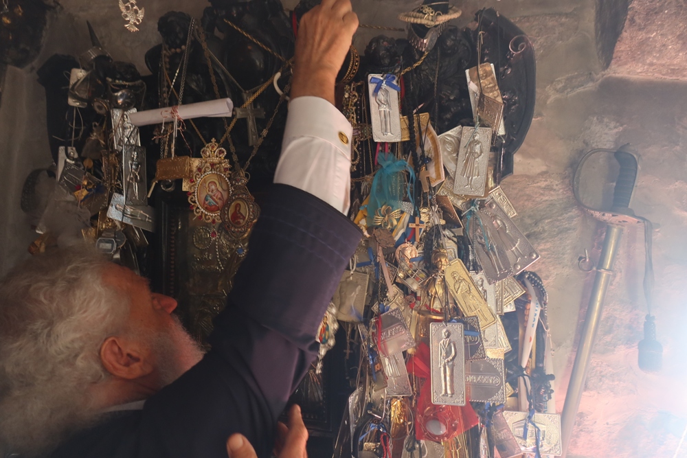 Αναφέρθηκε δε στην ιστορία της περιπύστου Εικόνας της Παναγίας Χοζοβιωτίσσης, η οποία επιβλέπει και προστατεύει όλους τους Αμοργίνους και κάθε προσκυνητή, ως «φτερούγα» ευχαρίστησε με εγκάρδιους λόγους τον Γέροντα Μητροπολίτη κ. Επιφάνιο, συνεχάρη τον Ηγούμενο της Μονής για την μέριμνά του προς αυτήν και ανήγγειλε την άφιξη και ενθρόνιση του νέου Μητροπολίτου Θήρας, Αμοργού και Νήσων κ. Αμφιλοχίου, καλώντας τους πιστούς να τον στηρίξουν και να τον περιβάλλουν με αγάπη!