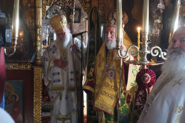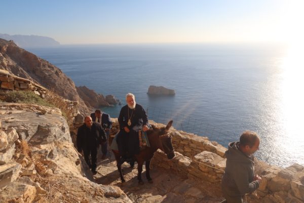 Στο Καθολικό της πανηγυρίζουσας Ιεράς Μονής Παναγίας Χοζοβιωτίσσης Αμοργού τελέσθηκε σήμερα το πρωί Δισαρχιερατική Θεία Λειτουργία, προεξάρχοντος του Σεβασμιωτάτου Μητροπολίτου ποτέ Θήρας κ. Επιφανίου, συνιερουργούντος του Σεβασμιωτάτου Τοποτηρητού Μητροπολίτου Σύρου κ. Δωροθέου, με τη συμμετοχή του Ηγουμένου της Μονής, Αρχιμ. Σπυρίδωνος, του αδελφού αυτής Αρχιμ. Θεοφίλου, του Αρχιερατικού Επιτρόπου Αμοργού Πρωτοπρ. Γεωργίου Θεολογίτη, του Εφημερίου Καταπόλων, και με την παρουσία της Βουλευτού Κυκλάδων κας Αικατ. Μονογυιού, του Δημάρχου Αμοργού κ. Ελευθερίου Καραΐσκου, του Περιφερειακού Συμβούλου κ. Ηλία Μάινα, του Αστυνομικού Διευθυντή και του Λιμενάρχη Αμοργού, Αξιωματικών της Αστυνομίας και του Λιμενικού και του του Προϊσταμένου του Τελωνείου Θήρας και πολλών Αμοργίνων πιστών.