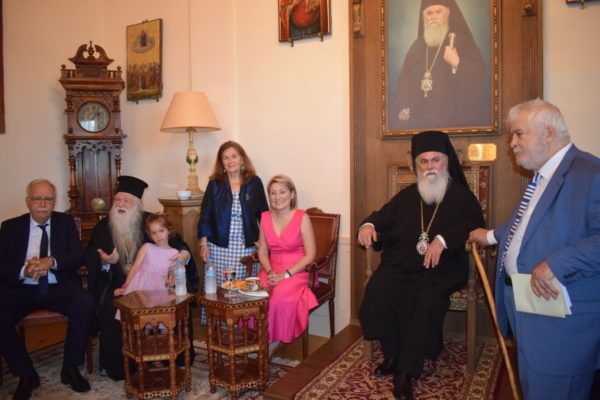 Η κ. Μπεντεβή ευχαρίστησε τον Σεβασμιώτατο για την υψίστη αυτή τιμή προς το πρόσωπό της και του προσέφερε τιμητικά έναν σημειοδέκτη, αυθεντικό κειμήλιο, σε ανάμνηση της αναρρήσεως στον θρόνο του Βασιλέως Κωνσταντίνου.