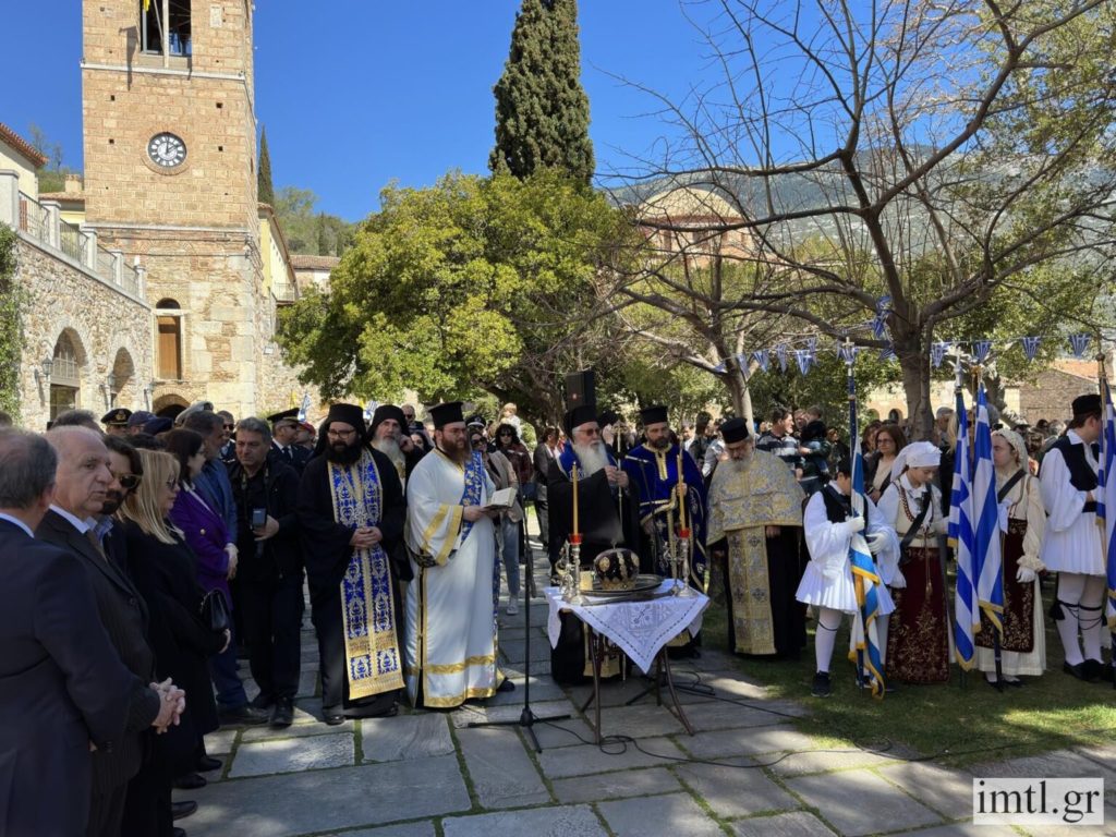 Στο Καθολικό της Μονής τελέστηκε Δοξολογία χοροστατούντος του Σεβασμιωτάτου Μητροπολίτη Θηβών, Λεβαδείας και Αυλίδος κ. Γεωργίου, πλαισιούμενου από τον Καθηγούμενο της Μονής πανοσ. αρχιμ. π. Σεραφείμ Παυλίδη, την αδελφότητα της Μονής και κληρικούς της περιοχής, τις αρχές του τόπου, τους πιστούς και τους μαθητές των σχολείων της περιοχής με τις σημαίες.