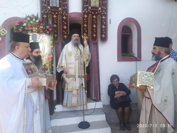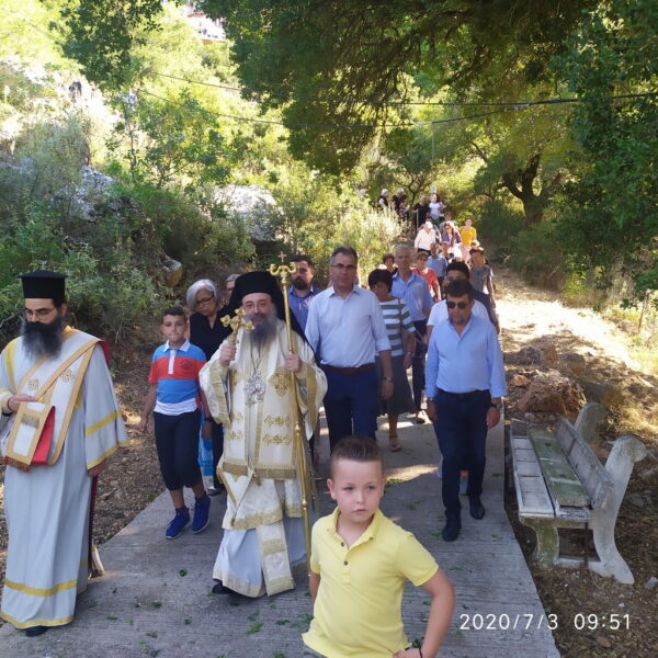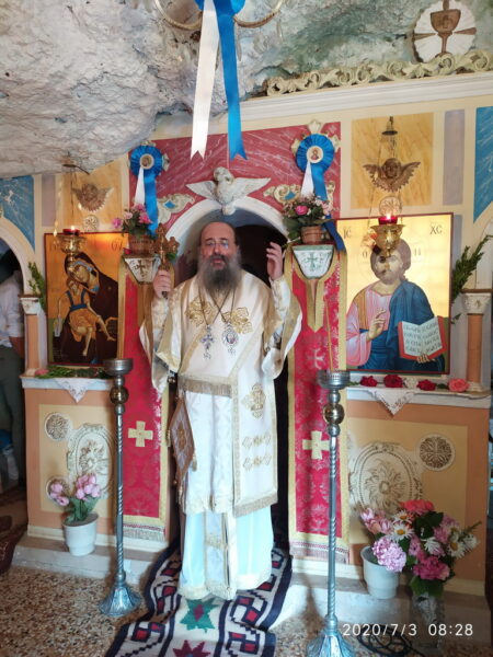Την κυριώνυμο ημέρα, ο Σεβασμιώτατος μετέβη στην Ιερά Μονή Νοτενών και στο Ιερό Ασκητήριο του Οσίου Ιωακείμ και τέλεσε την Θεία Λειτουργία αλλά και τη Θεία Ευχαριστία στον τόπο τον οποίο καθηγίασε ο Όσιος με τους αυστηρούς ασκητικούς αγώνες και καμάτους του.