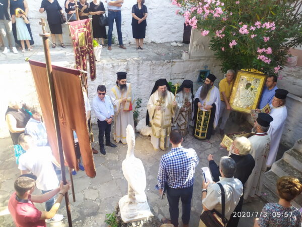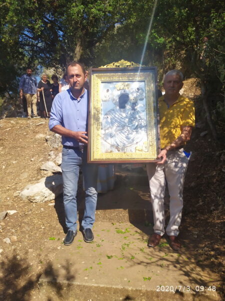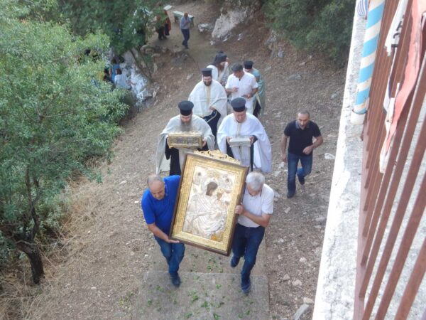 Στη συνέχεια λιτανεύτηκαν τα Ιερά Λείψανα του Αγίου και η Ιερά Εικόνα της Παναγίας, από το Ασκητήριο του Οσίου έως την Ιερά Μονή Νοτενών.