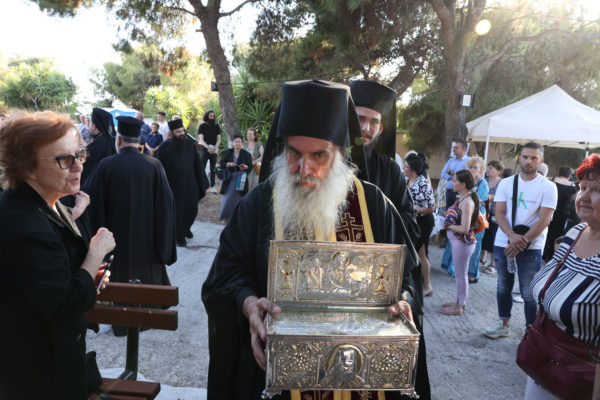 Την παραμονή της εορτής τελέσθηκε πανηγυρικός Αρχιερατικός Εσπερινός χοροστατούντος του Σεβ. Μητροπολίτη Μεγάρων και Σαλαμίνος κ. Κωνσταντίνου, πλαισιούμενος από τον Πρωτοσύγκελλο της Ι.Μ. Φωκίδος, Γέροντα Νεκτάριο Μουλατσιώτη, τον Πρωτοσύγκελλο της Ιεράς Μητροπόλεως Μεγάρων και Σαλαμίνος και Καθηγούμενο της Ιεράς Μονής Παναγίας Γαλακτοτροφούσης Αρχιμανδρίτη Προκόπιο Γεωργίου, τον Ηγούμενο της Ιεράς Μονής Αγίου Βλασίου Μεγαρίδος, καθώς και ιερέων της Ιεράς Μητροπόλεως και άλλων Ι. Μητροπόλεων.