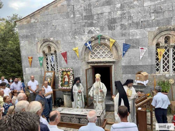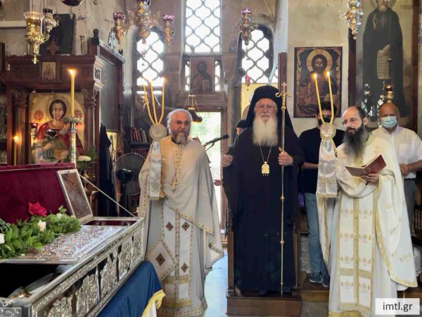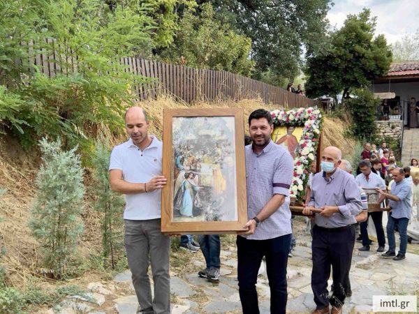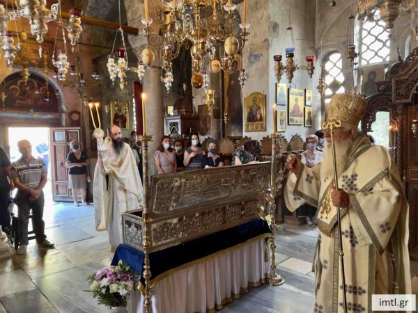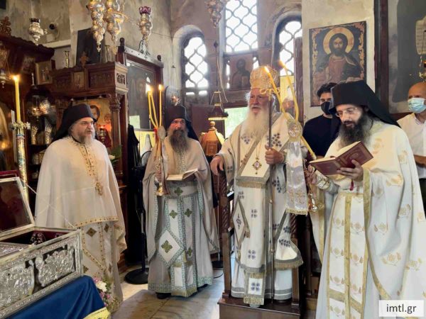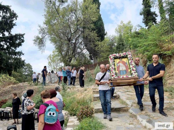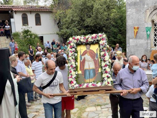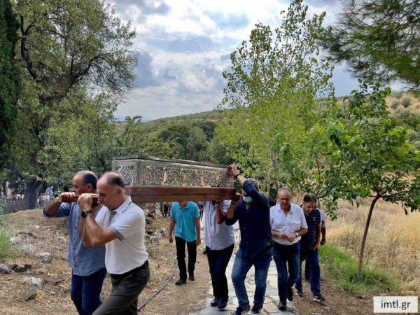 Μετά τη Θεία Λειτουργία ακολούθησε η λιτάνευση της εικόνας της Κοιμήσεως της Θεοτόκου, καθώς και της εικόνας και του ιερού λειψάνου του Αγίου Φλώρου πέριξ της Ιεράς Μονής.