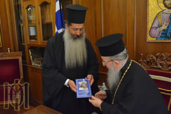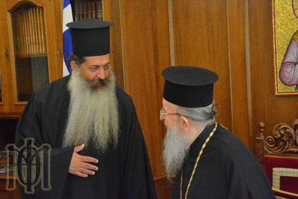 Μετά το πέρας της Θείας Λειτουργίας, ο Σεβασμιώτατος κ. Συμεών επισκέφθηκε την Ιερά Μητρόπολη Θεσσαλονίκης, προκειμένου να υποβάλλει σεβάσματα και ευχαριστίες προς τον Παναγιώτατο κ. Άνθιμο, με τον οποίο συζήτησαν επί μακρόν για διάφορα εκκλησιαστικά και κοινωνικά θέματα.