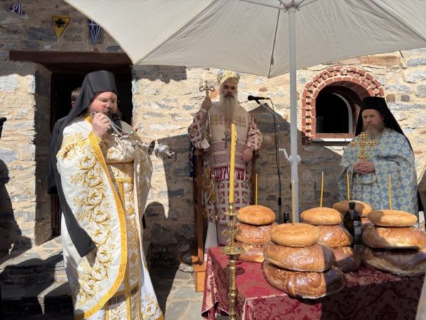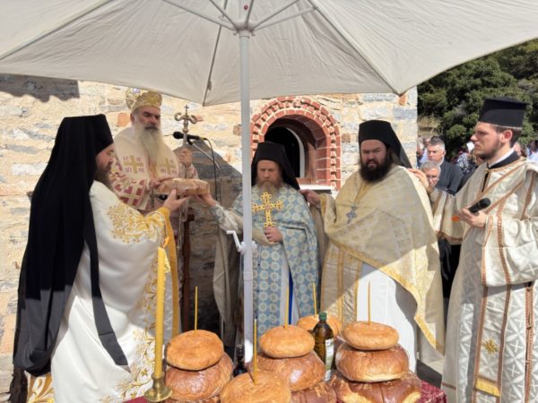 Αμέσως μετά τη Θεία Λειτουργία ακολούθησε κέρασμα στην Ιερά Μονή, όπου οι προσκυνητές είχαν την ευκαιρία εκτός από τα γλυκίσματα που με πολλή αγάπη προσεφέρθησαν να συνομιλήσουν με τον Σεβασμιώτατο και τους Πατέρες και να γευθούν για άλλη μια φορά την αγάπη τους και το ανύστακτο ενδιαφέρον τους για τον πνευματικό τους καταρτισμό.