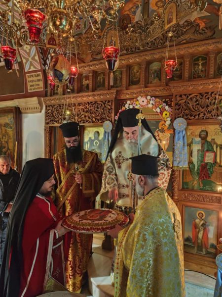 Της Ιεράς Αγρυπνίας ακολούθησε η ευλογία-κοπή της Αγιοβασιλόπιτας της Ιεράς Μονής, στο Αρχονταρίκι της Μονής, όπου ο Σεβ. Ποιμενάρχης κ. Αμφιλόχιος ευχήθηκε «στην σεβαστή Γερόντισσα Μαρκέλλα και την τιμία συνοδεία Της Παναγιοσκέπαστη – Θεοτοκοφρούρητη διακονία στις αυλές της Παναγίας μας», μνημονεύοντας και ευχαριστώντας «δια την υπέρ 60ετή πιστή, αφοσιωμένη, ταπεινή και ευλογημένη διακονία της σεβαστής Γερόντισσας Μαρκέλλας στην Ιερά Μονή Παρθενώνος».