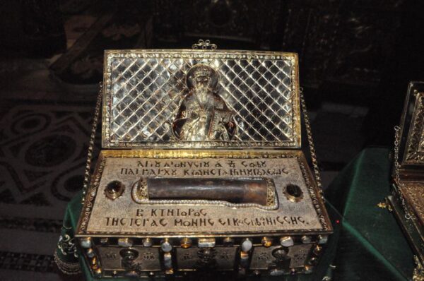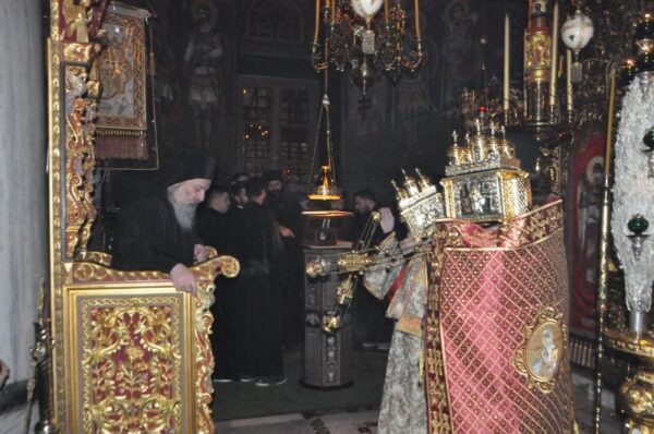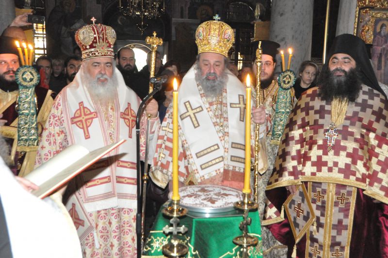 Τό Σάββατο τό πρωί, ἡμέρα τῆς ἑορτῆς τῶν ἁγίων κτητόρων, τελέσθηκε Ἀρχιερατική Θεία Λειτουργία συλλειτουργούντων τῶν Σεβασμιωτάτων Ἀρχιερέων Νεαπόλεως καί Σταυρουπόλεως κ. Βαρνάβα καί Δράμας κ. Παύλου παρουσίᾳ πλήθους ἱερέων. Τό θεῖο λόγο κήρυξε ὁ Σεβασμιώτατος Μητροπολίτης κ. Βαρνάβας. Τέλος ἔγινε τρισάγιο ὑπέρ ἀναπαύσεως τῶν ψυχῶν τῶν ἀδελφῶν τῆς Ἱερᾶς Μονῆς – Ἀρχιερέων, Ἱερομονάχων καί Μοναχῶν – καί λιτάνευση τῶν ἱερῶν λειψάνων καί τῆς εἰκόνας τῶν κτητόρων γύρω ἀπό τό καθολικό τῆς Ἱερᾶς Μονῆς.