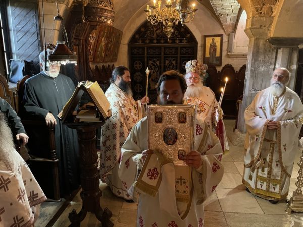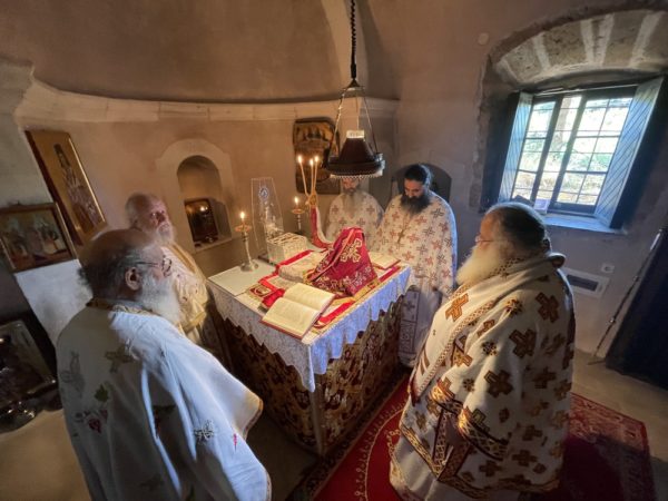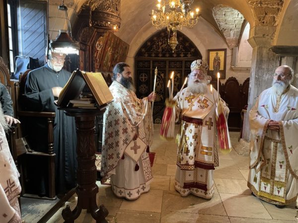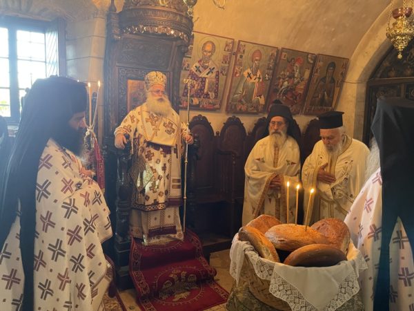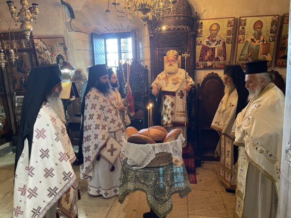 Ο Σεβ. Μητροπολίτης Ιεραπύτνης και Σητείας κ. Κύριλλος Μητροπολίτης κ. Κύριλλος χοροστάτησε στην ακολουθία του Όρθρου, ευλόγησε τους προσφερόμενος άρτους και στη συνέχεια ιερούργησε, περιστοιχούμενος από τον Ηγούμενο και Πατέρες της Ιεράς Μονής.