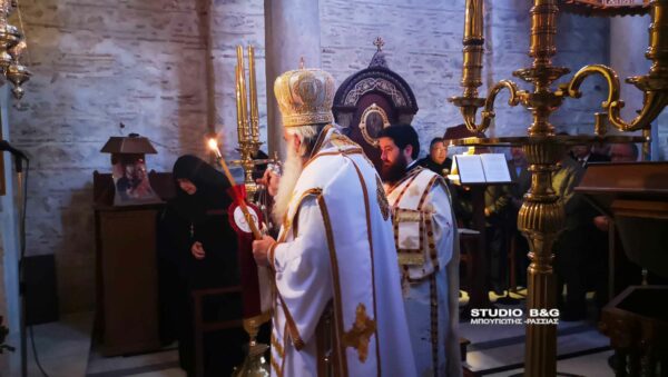 Την παραμονή της εορτής τελέσθηκε Αρχιερατικός εσπερινός χοροστατούντος του Μητροπολίτη Αργολίδος Νεκταρίου.