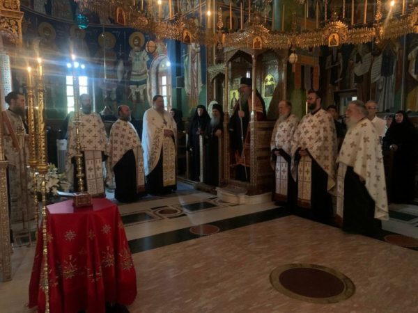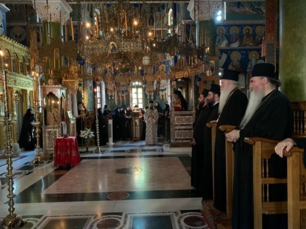 Ο Σεβασμιώτατος χοροστάτησε στον Εσπερινό της ημέρας, συμπροσευχομένων των Σεβασμιωτάτων Μητροπολιτών Μεσογαίας και Λαυρεωτικής κ. Νικολάου και Νέας Κρήνης και Καλαμαριάς κ. Ιουστίνου, ενώ αμέσως μετά τον Εσπερινό παρεκάθησε στην εόρτιο τράπεζα και είχε την ευκαιρία ουσιαστικού συμπνευματισμού με τους αγίους Αρχιερείς και την Αδελφότητα.